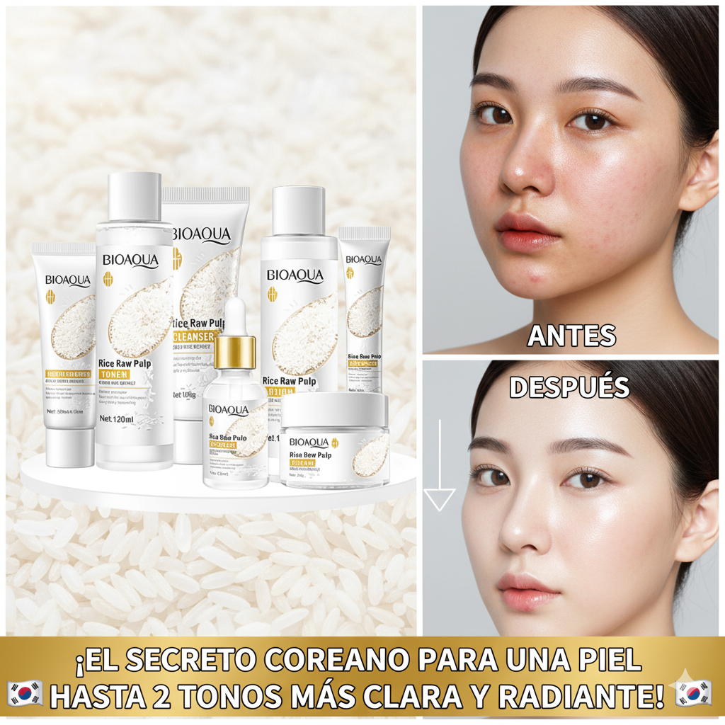 Set Coreano de Arroz Bioaqua: ¡Piel Hasta 3 Tonos Más Clara! 🇰🇷